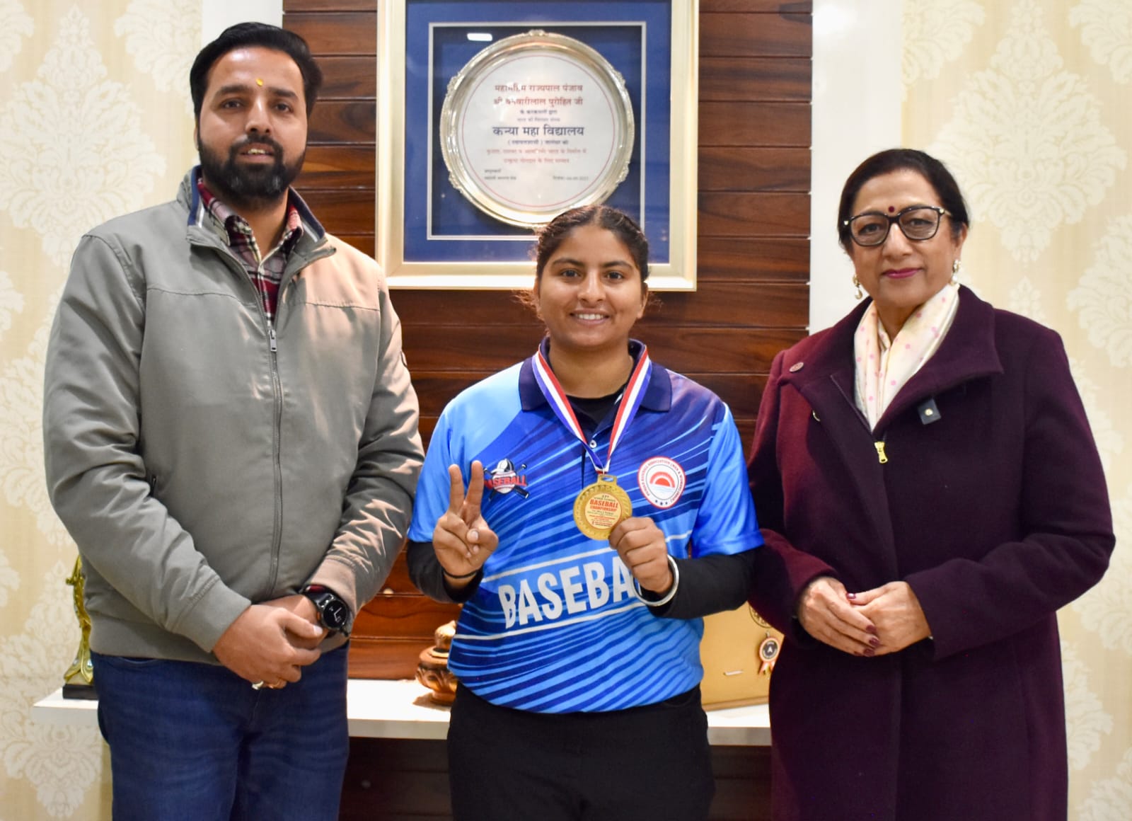 कन्या महा विद्यालय (स्वायत्त) ने शिक्षा के साथ-साथ खेलों में भी उत्कृष्ट प्रदर्शन के माध्यम से संस्थान का नाम रोशन करना जारी रखा है। इसी कड़ी में, के.एम.वी. की बेसबॉल खिलाड़ी खुशदीप कौर ने 37वीं सीनियर नेशनल बेसबॉल चैंपियनशिप में स्वर्ण पदक हासिल कर कॉलेज का नाम गौरवान्वित किया। यह प्रतियोगिता पंजाब के संगरूर में आयोजित की गई थी, जहां खुशदीप ने शानदार प्रदर्शन करते हुए यह पदक अपने नाम किया। गौरतलब है कि इस उपलब्धि से पहले खुशदीप कौर ने औरंगाबाद में आयोजित 14वीं फेडरेशन कप नेशनल सॉफ्टबॉल वूमेन चैंपियनशिप में रजत पदक जीता था। इसके अलावा, खुशदीप कौर ने 2023 में आयोजित 45वीं सीनियर नेशनल सॉफ्टबॉल चैंपियनशिप (पुरुष एवं महिला) में स्वर्ण पदक और 13वीं फेडरेशन कप नेशनल सॉफ्टबॉल चैंपियनशिप में रजत पदक भी हासिल किया। साथ ही, खुशदीप ने 39वीं पंजाब सॉफ्टबॉल जूनियर नेशनल चैंपियनशिप और विशाखापट्टनम, आंध्र प्रदेश में आयोजित चैंपियनशिप में कांस्य पदक जीता। प्रिंसिपल प्रो. अतीमा शर्मा द्विवेदी ने मेधावी छात्रा को बधाई देते हुए उसके उज्ज्वल भविष्य की कामना की और उसे लगन व मेहनत से आगे बढ़ने के लिए प्रेरित किया। उन्होंने शारीरिक शिक्षा विभाग के प्रमुख डॉ. दविंदर सिंह और मनप्रीत कौर के प्रयासों की भी सराहना की।