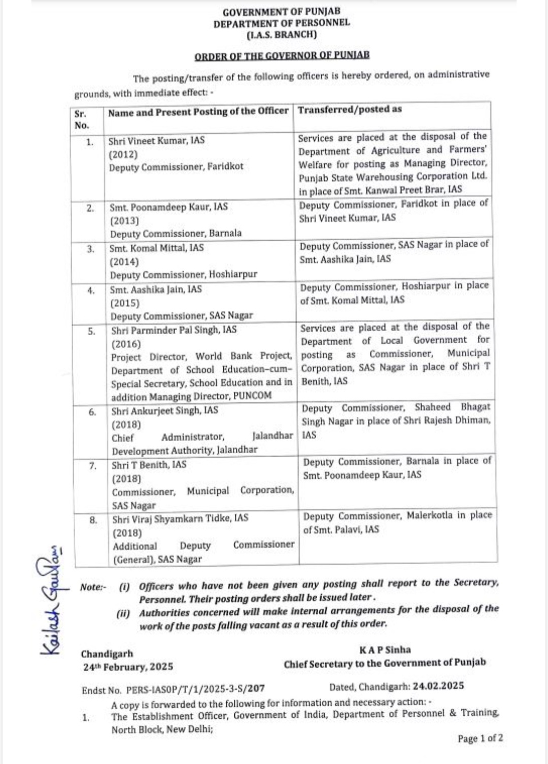 Home Punjab पंजाब: तबादला 4 जिलों के DC सहित 8 IAS अधिकारियों का, पढ़ें... Punjab पंजाब: तबादला 4 जिलों के DC सहित 8 IAS अधिकारियों का, पढ़ें सूची By News Desk - February 24, 2025 Facebook Twitter Pinterest WhatsApp Email Print Telegram