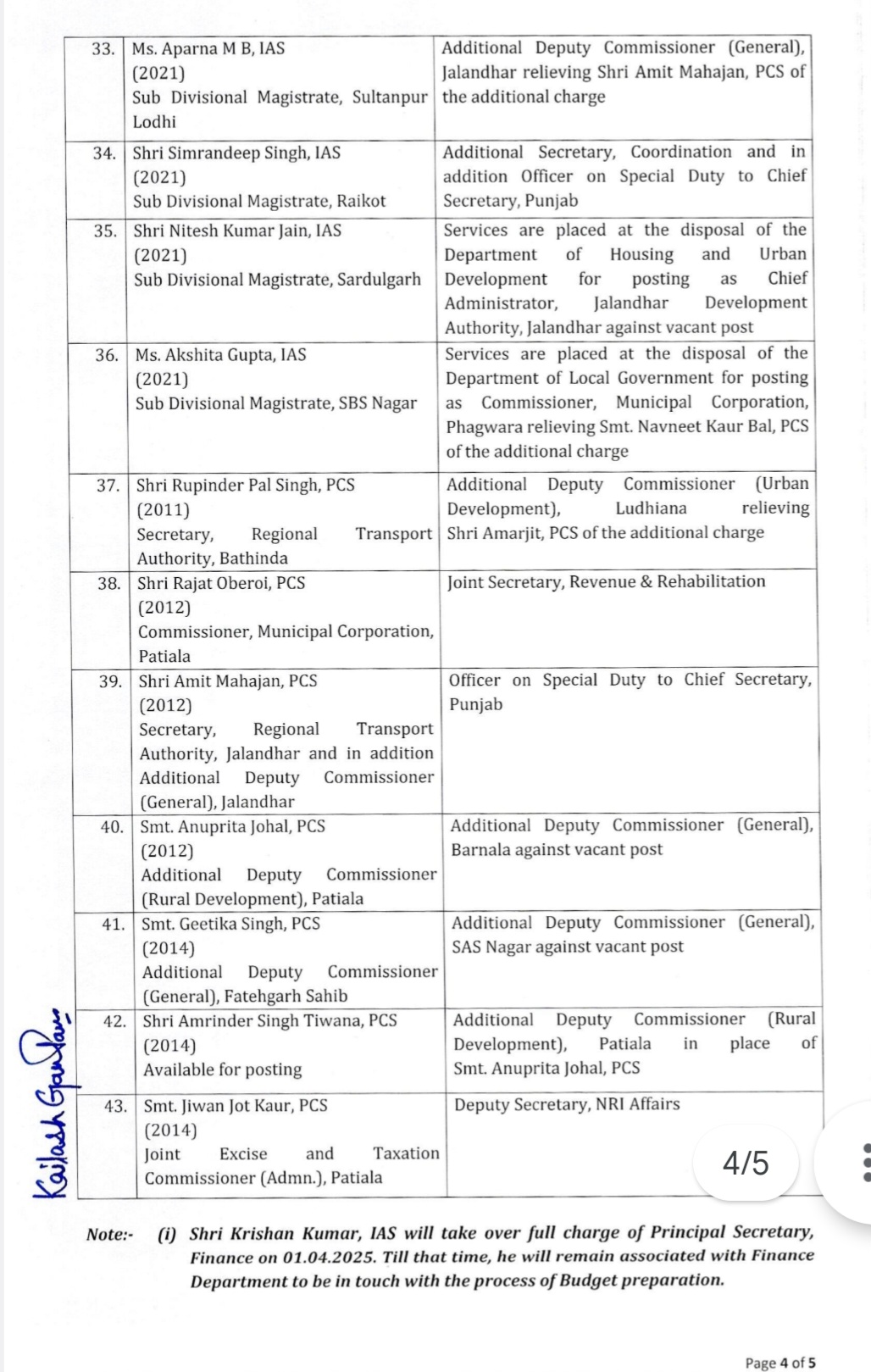 Home Punjab पंजाब: तबादले 43 IAS PCS अधिकारियों के, पढ़ें सूची Punjab पंजाब: तबादले 43 IAS PCS अधिकारियों के, पढ़ें सूची By News Desk - March 3, 2025 Facebook Twitter Pinterest WhatsApp Email Print Telegram