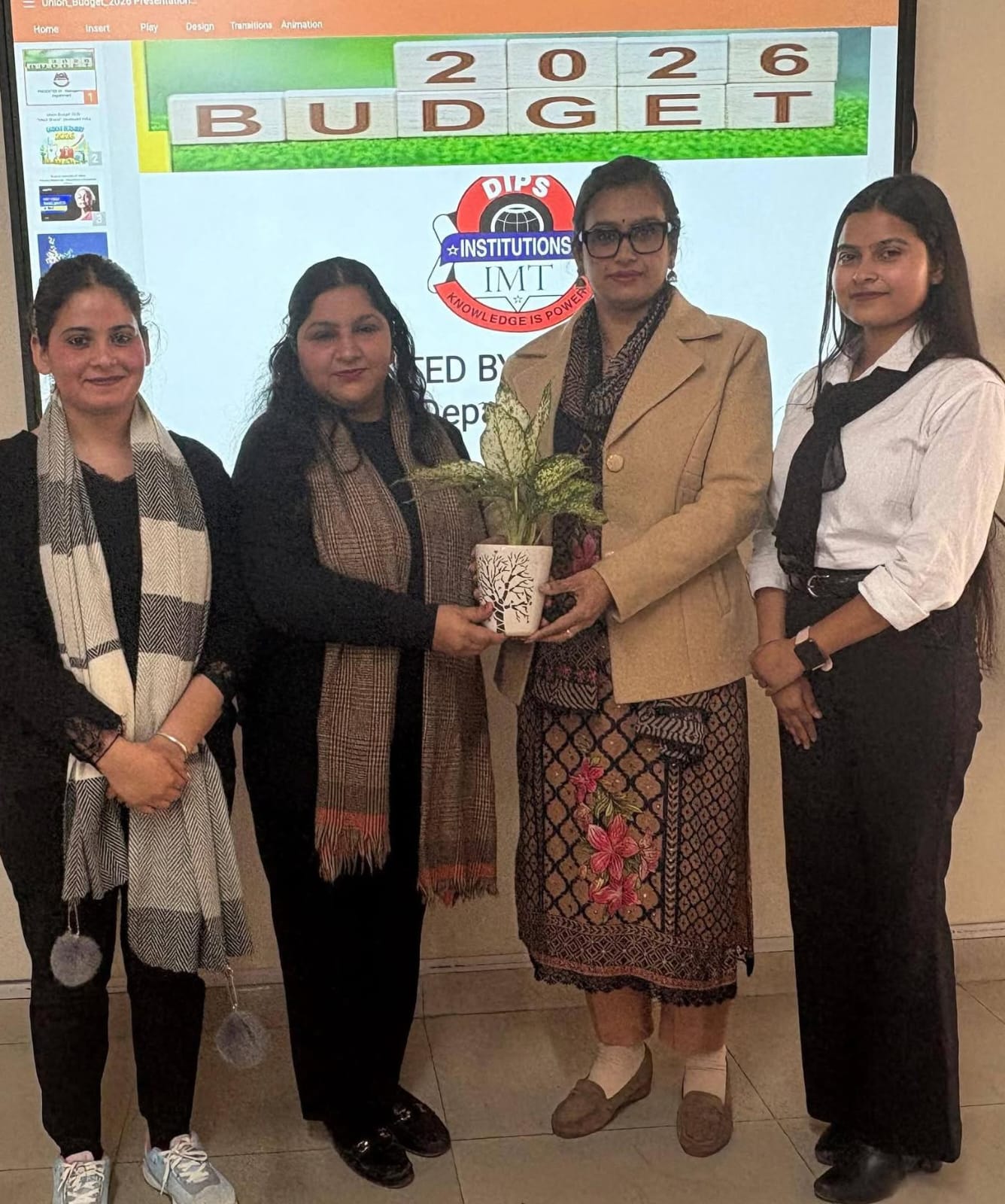 डिप्स आईएमटी के प्रबंधन विभाग द्वारा “360° यूनियन बजट 2026-27” विषय पर सेमिनार आयोजित किया गया। इस कार्यक्रम का उद्देश्य विद्यार्थियों को यूनियन बजट, सरकारी योजनाओं, नई नीतियों और टैक्स सुधारों की जानकारी देना था।