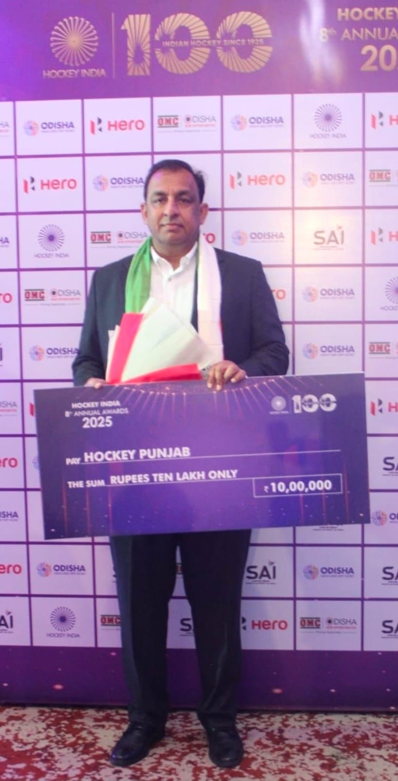 बयूरो (गोलमाल न्यूज़) : हॉकी भारत द्वारा दिल्ली में आयोजित आठवें वार्षिक सम्मान समारोह 2025 में हॉकी पंजाब के अध्यक्ष एवं हॉकी भारत के उपाध्यक्ष नितिन कोहली की अगुवाई में हॉकी पंजाब ने बड़ी सफलता हासिल करते हुए देश का सर्वश्रेष्ठ एसोसिएशन (संघ) का खिताब अपने नाम किया। इस खिताब के तहत हॉकी पंजाब को दो लाख पचास हजार रुपये की पुरस्कार राशि प्रदान की गई।