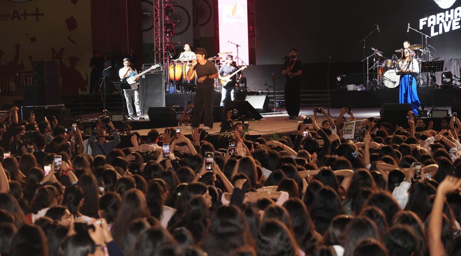 मिंत्रा ग्लेमफेस्ट टूर के हिस्से के तौर पर परफॉर्मेंस देते हुए, फरहान अख्तर ने अपनी ज़बरदस्त मौजूदगी और दिल को छू लेने वाली आवाज़ से स्टेज पर समां बांध दिया। जब उन्होंने ‘रॉक ओन’, ‘अतरंगी यारी’, ‘सेनोरिटा’ और ‘दिल धड़कने दो’ जैसे चार्टबस्टर गाने गाए, तो स्टूडेंस खुशी से झूम उठे। पूरा कैंपस संगीत के एक जीवंत सागर में बदल गया, जहाँ स्टूडेंट्स उनके साथ गा रहे थे, पूरे जोश के साथ नाच रहे थे और अपनी फ्लैशलाइट्स लहरा रहे थे, जिससे वहाँ का माहौल बेहद शानदार हो गया था।